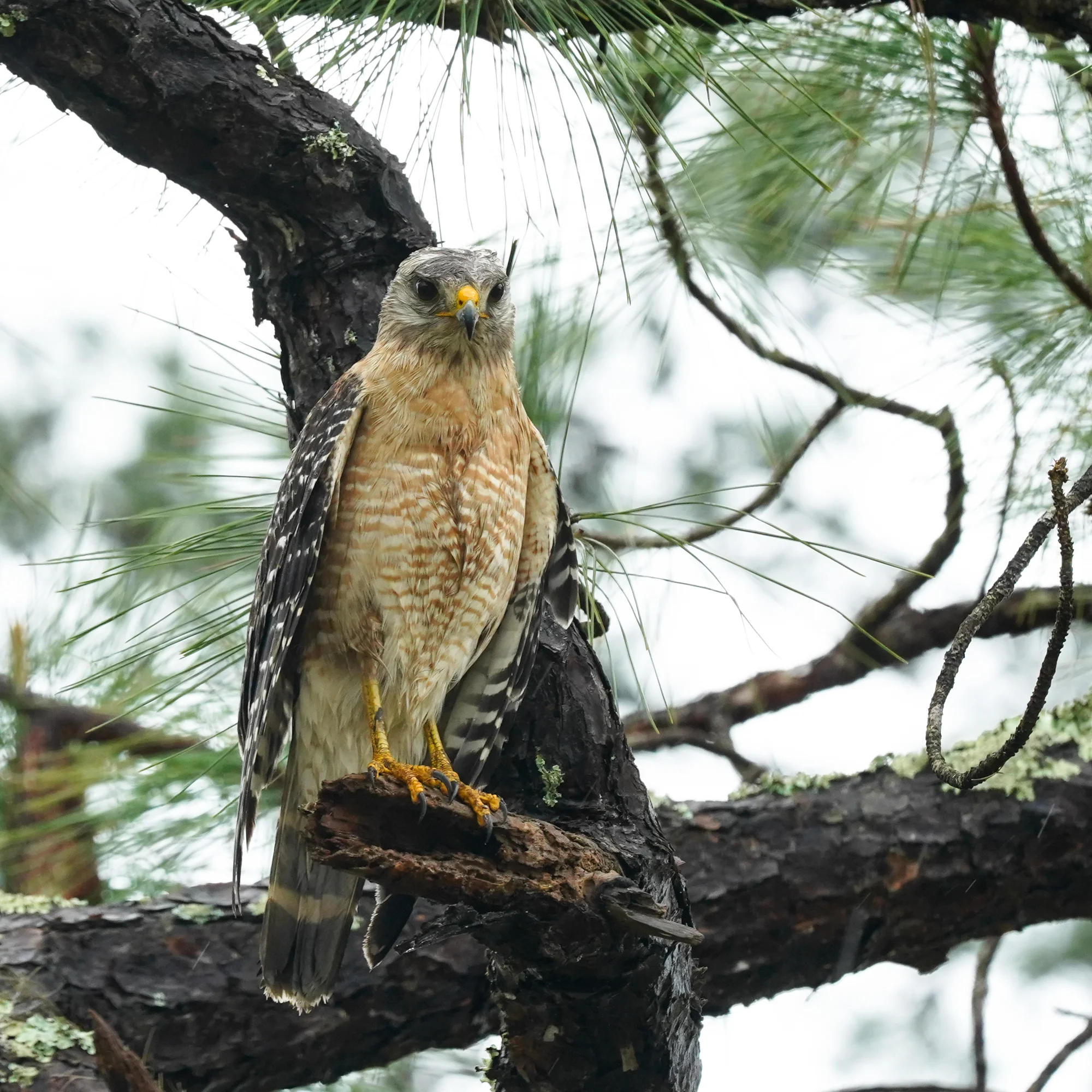 red-shouldered hawk looking a little ragged after a massive rain storm