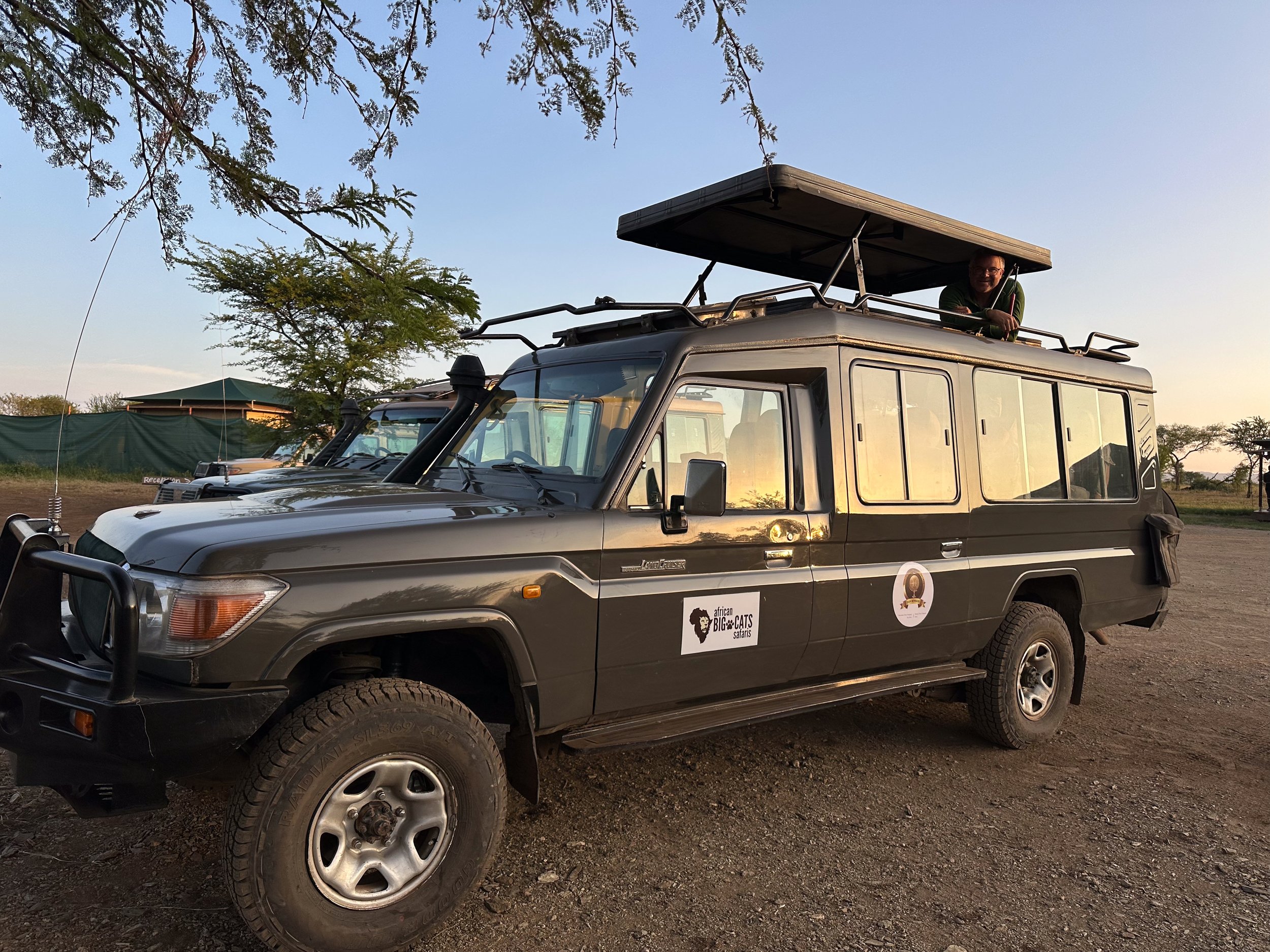 Standing in our Toyota Land Cruiser. Looks pretty similar to the ones I saw on TV as a kid. (Photo by Salwa Farah)